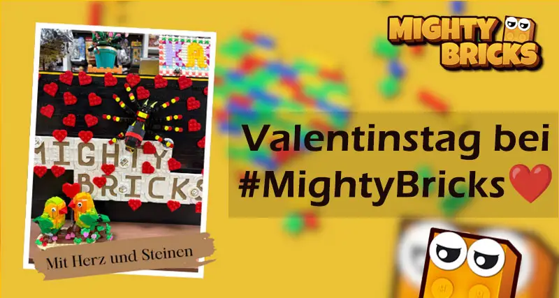 Zum Valentinstag wurde es bei MightyBricks in Teltow besonders kreativ: rote Herzen, eine ungewöhnliche LEGO-Spinne und zwei farbenfrohe Papageien schmücken den Kassenbereich. Ein kleiner Einblick mit viel Herz.