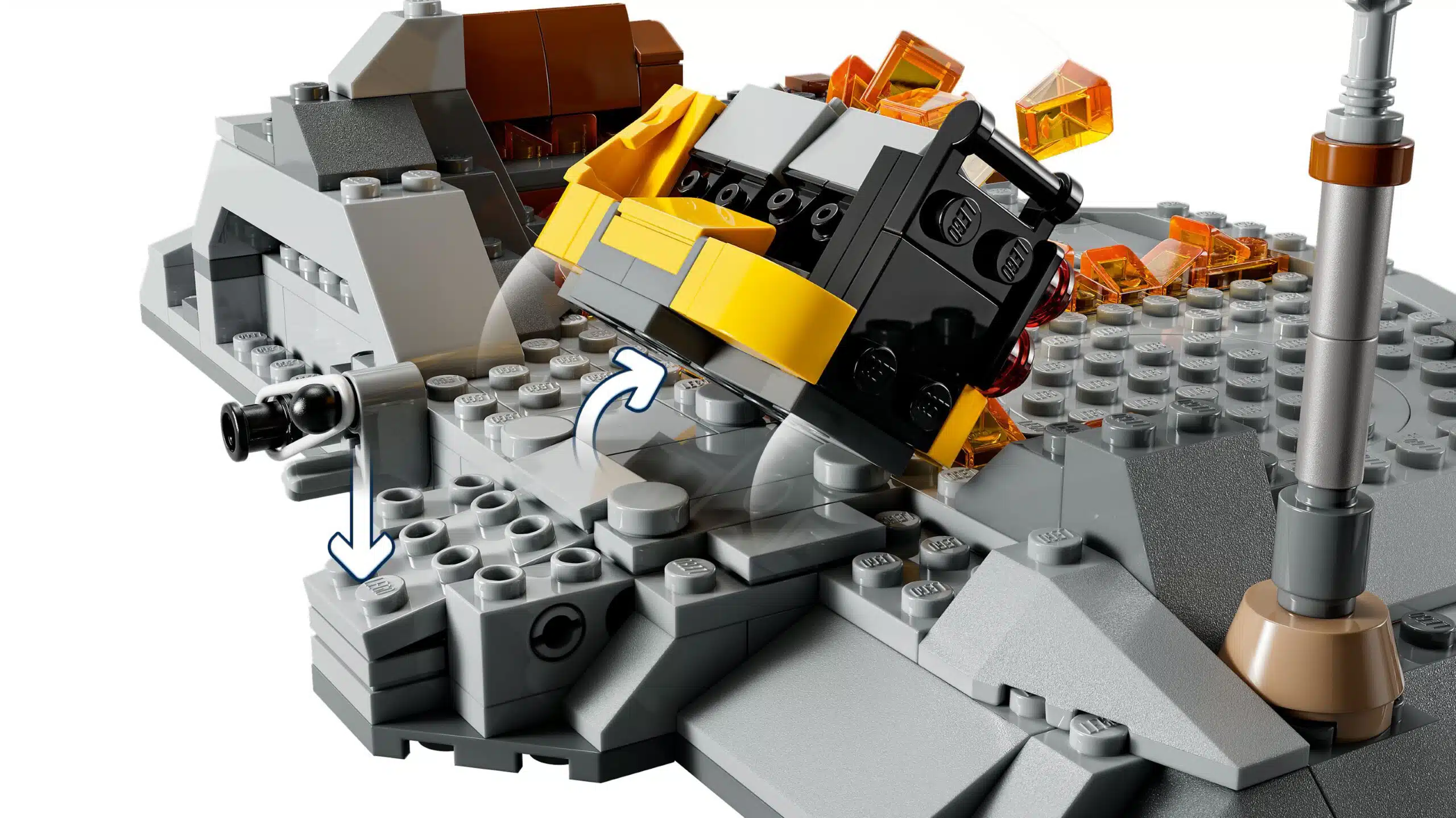 - Faszinierende Funktionen laden zum Spielen ein: 2 drehbare Duell-Plattformen, ein durchscheinender Ständer für Obi-Wans Macht-Sprünge, hochschnellende Flammen, ein aufklappbarer Schmelzofen sowie eine Lore zum Ankoppeln und Umstoßen.