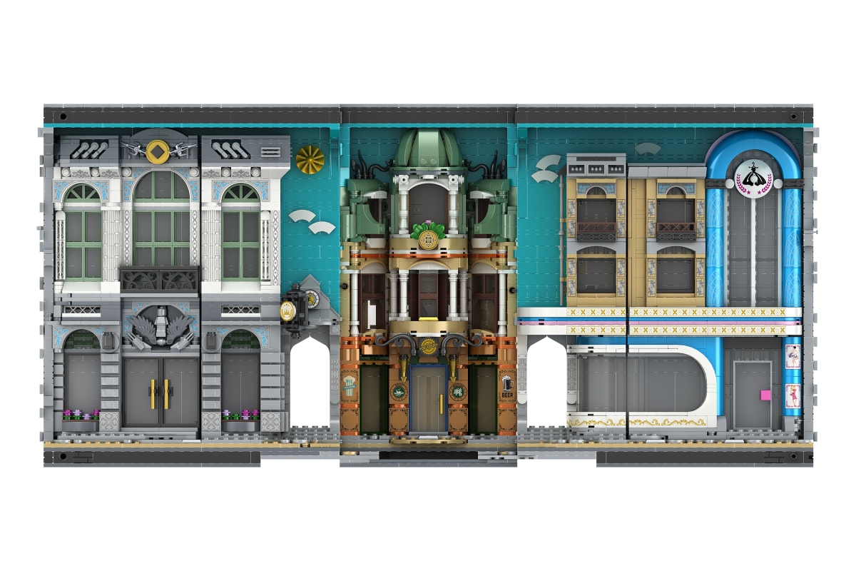Die Stadt in Europa im Buch – Das Set besteht aus insgesamt 3.108 Steinen. Aufgebaut und ausgeklappt ist das Reobrix Buch ca. 62cm x 13cm x 30cm groß.